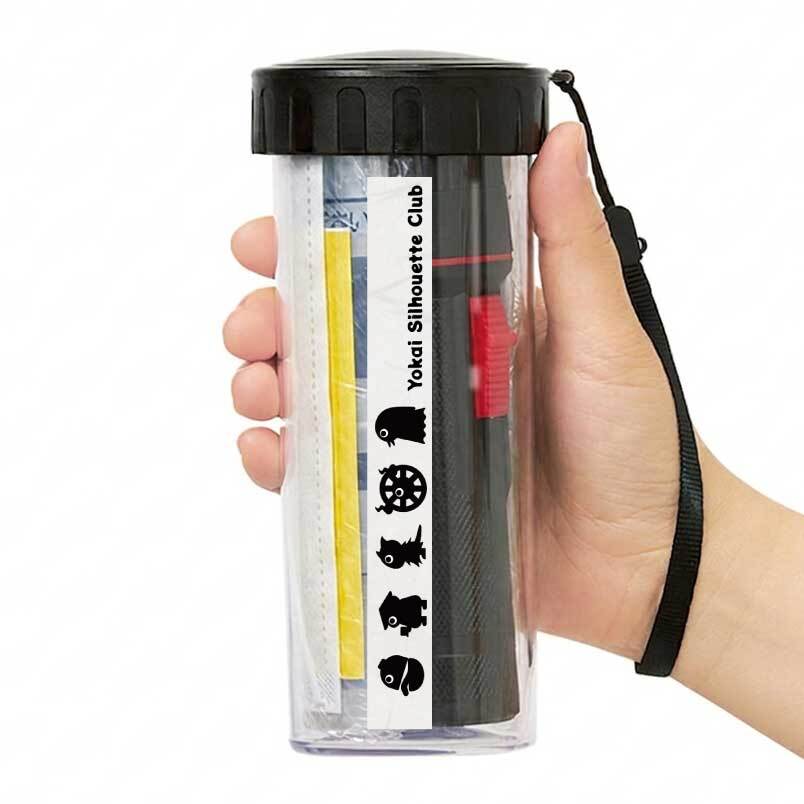 防災グッズ7点詰め合わせボトルです。シルエットクラブを代表してあまびえなどがあなたの防災をサポートします。下地には羽のような繊維模様(雲竜)が散りばめられた和紙柄が使用されています。